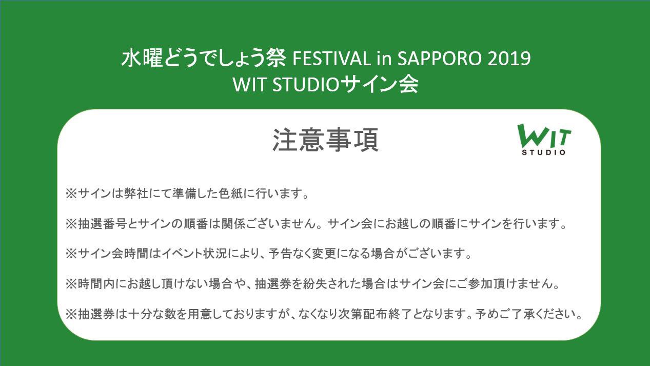 Wit Studio 水曜どうでしょう祭 突発イベントですが 明日10 5 日 にdjブースをお借りしてwit Studioスタッフのサイン会を開催します 詳細はこちらをご確認ください 突発なので時間はあくまで予定です あしからず どう祭19day2 水曜