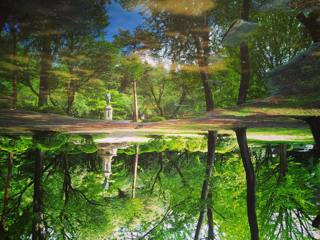 一橋大学の水溜りを撮影した写真が美しすぎる しかしちょっとしたトリックが仕込まれていて二度驚く スマホを半回転してみてください Togetter