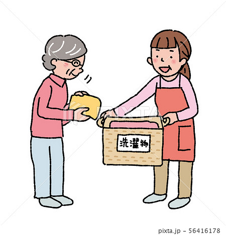 洗濯物 ヘルパー 高齢者 イラストのイラスト素材
